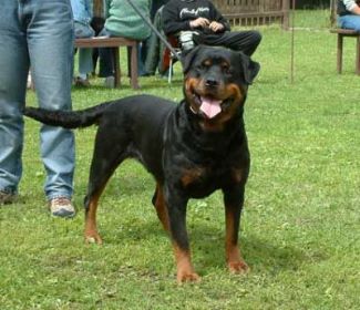 Groß, gehaltvoll, aufmerksam, typvoller Kopf, kurzer voller Fang und schönem Stopp, korrekte Ohren, VH natürlich gewinkelt, gerade, sehr gut aufgeknöchelte Pfoten, Rücken i. d. Bewegung etwas nachgebend, kurzes Stockhaar, braune Abzeichen, dunkle Maulpigmente, frei in der Bewegung, kräftige Rute, Scherengebiß.